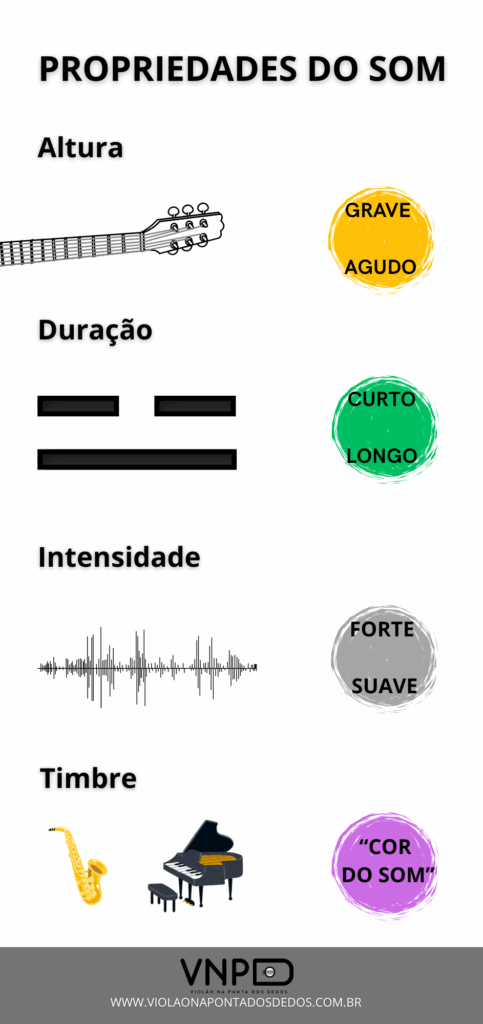 As propriedades do som na música são características que nos permitem perceber diferenças entre notas, instrumentos e até na forma de tocar. São quatro: